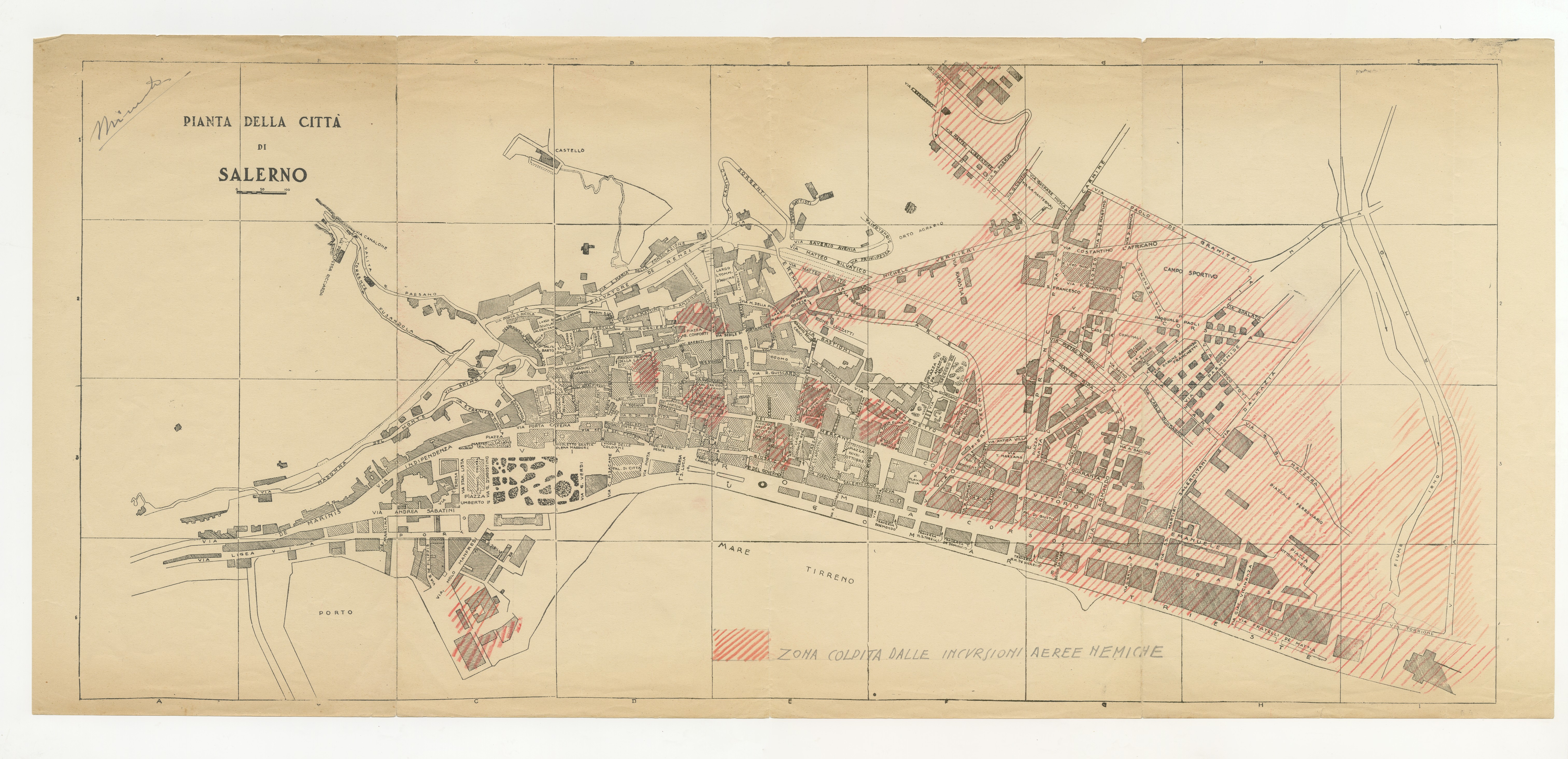 Pianta con indicazione delle zone colpite da incursioni aeree nemiche